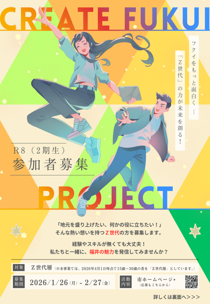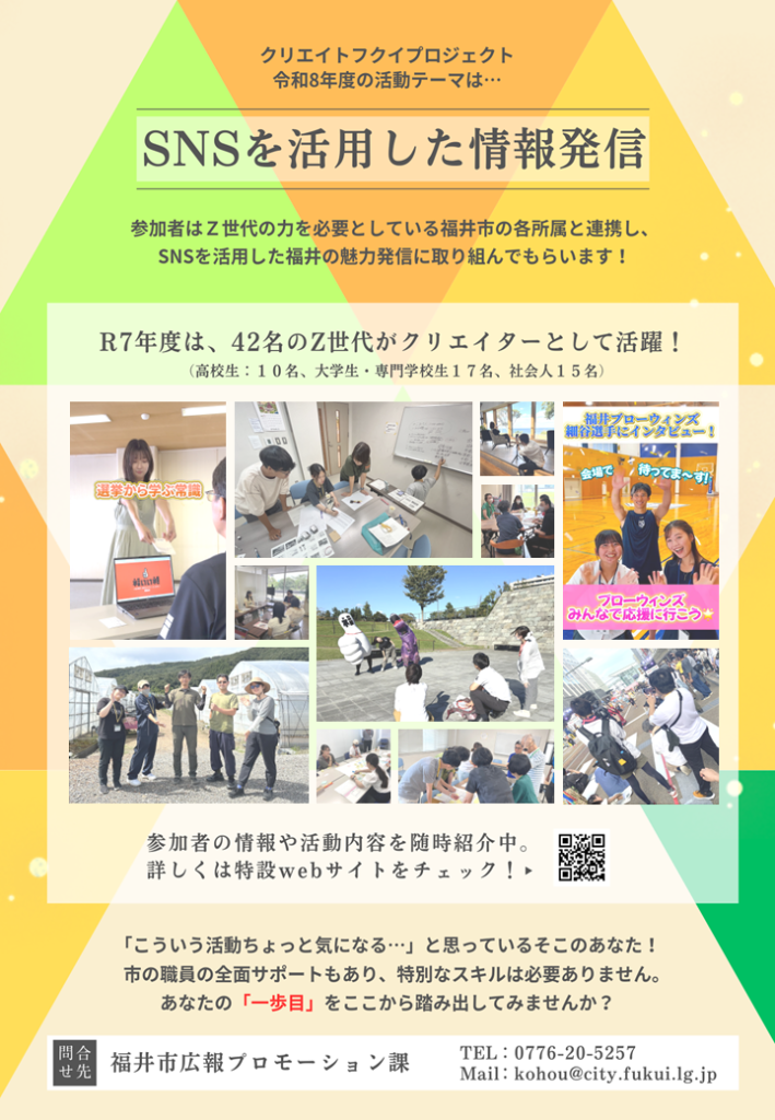 令和7年6月から福井市と若者が連携・協力して、福井市のまちづくりや地域課題解決、魅力発信などに取り組んでいる「クリエイトフクイプロジェクト」。